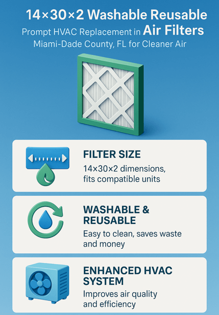 14×30×2 Washable Reusable Air Filters Model and Prompt HVAC Replacement in Miami-Dade County FL for Better Air
